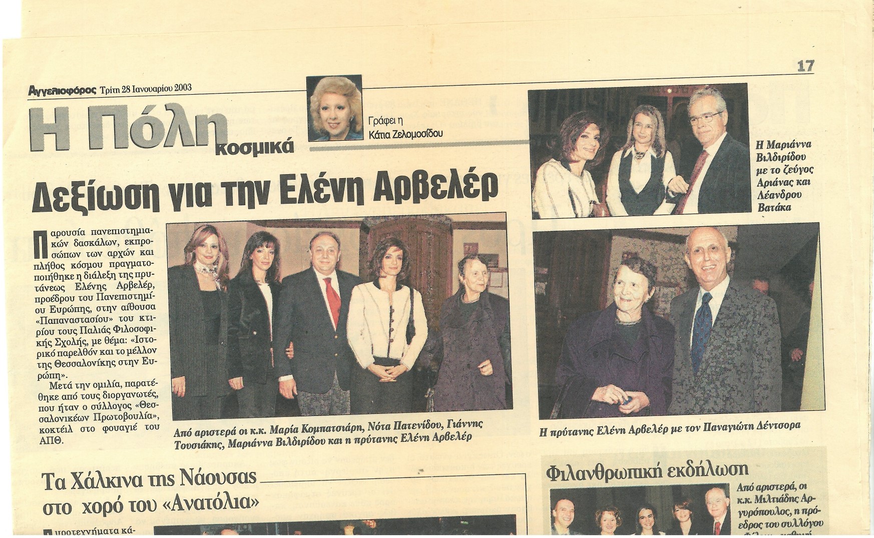 Παρουσία πανεπιστημιακών δασκάλων, εκπροσώπων των αρχών και πλήθος κόσμου πραγματοποιήθηκε η διάλεξη της πρυτάνεως Ελένης Αρβελέρ, προέδρου του Πανεπιστημίου Ευρώπης, στην αίθουσα «Παπαναστασίου» του κτιρίου τους Παλιάς Φιλοσοφικής Σχολής με θέμα: «Ιστορικό παρελθόν και το μέλλον της Θεσσαλονίκης στην Ευρώπη».