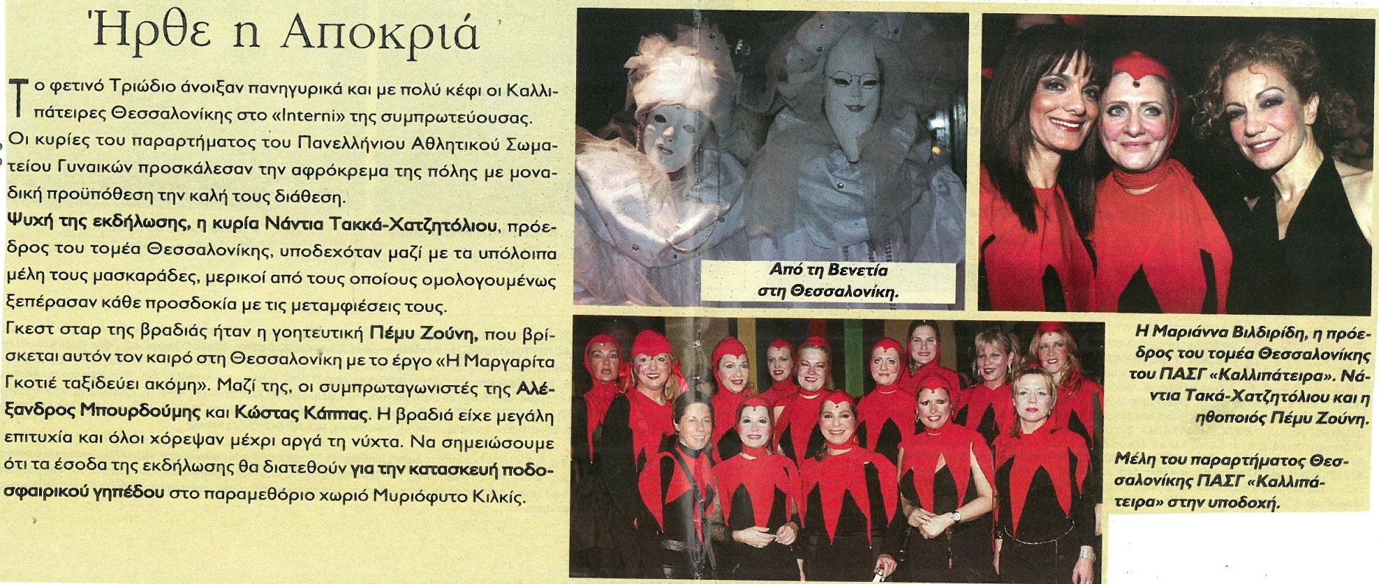 Η Δρ. Μαριάννα Βιλδιρίδη-Χατζητόλιου σε αποκριάτικη εκδήλωση του σωματείου Καλλιπάτειρα