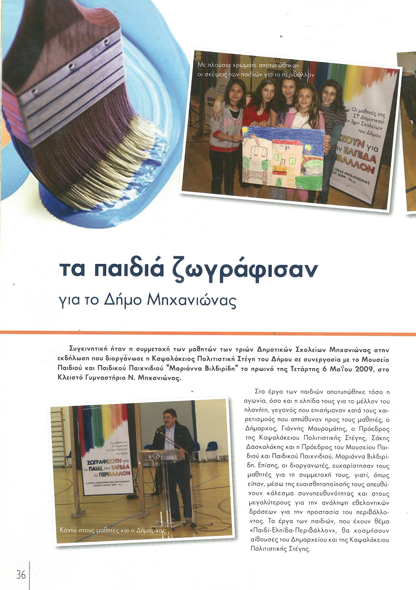06-05-2008 2009 Δήμος Μηχανιώνας Τα παιδιά ζωγράφισαν για τον δήμο Μηχανιώνας Δρ. Μαριάννα Βιλδιρίδη-Χατζητόλιου Παιδί Παιχνίδι Μουσείο Παιδιού και Παιχνιδιού